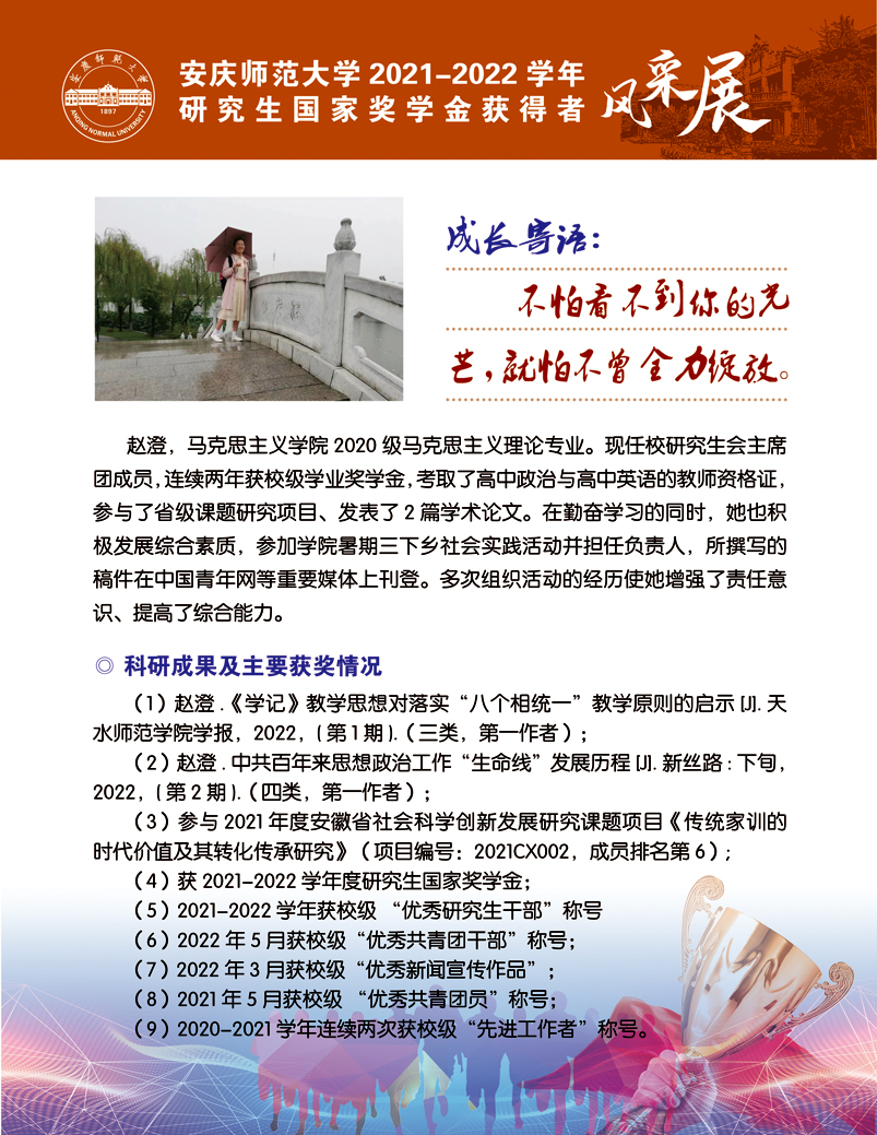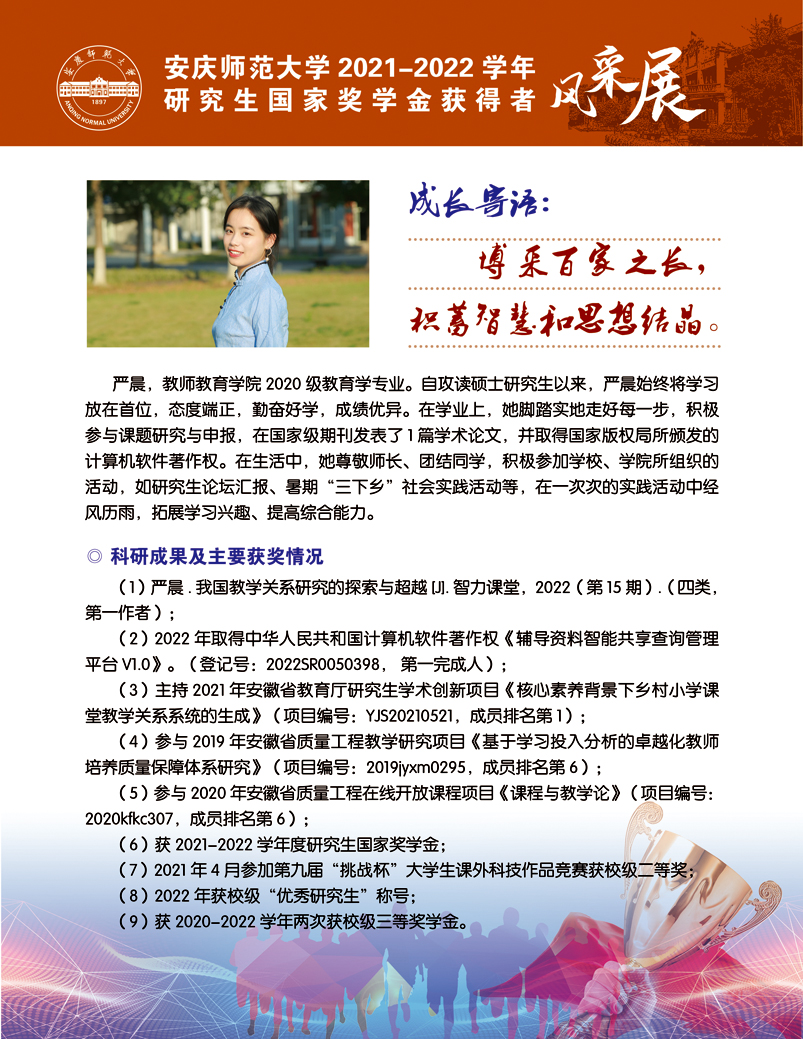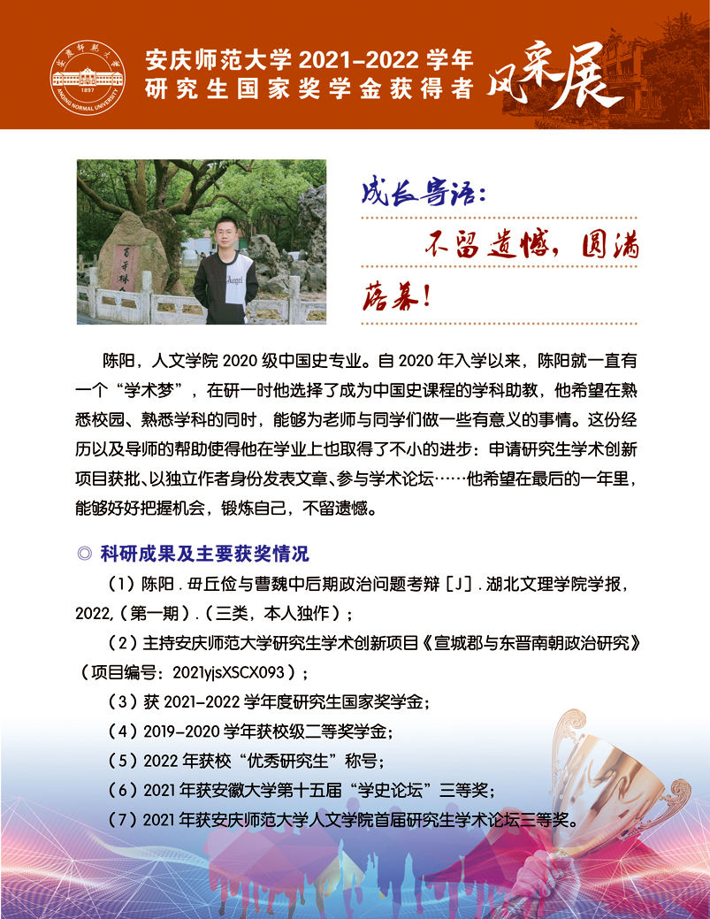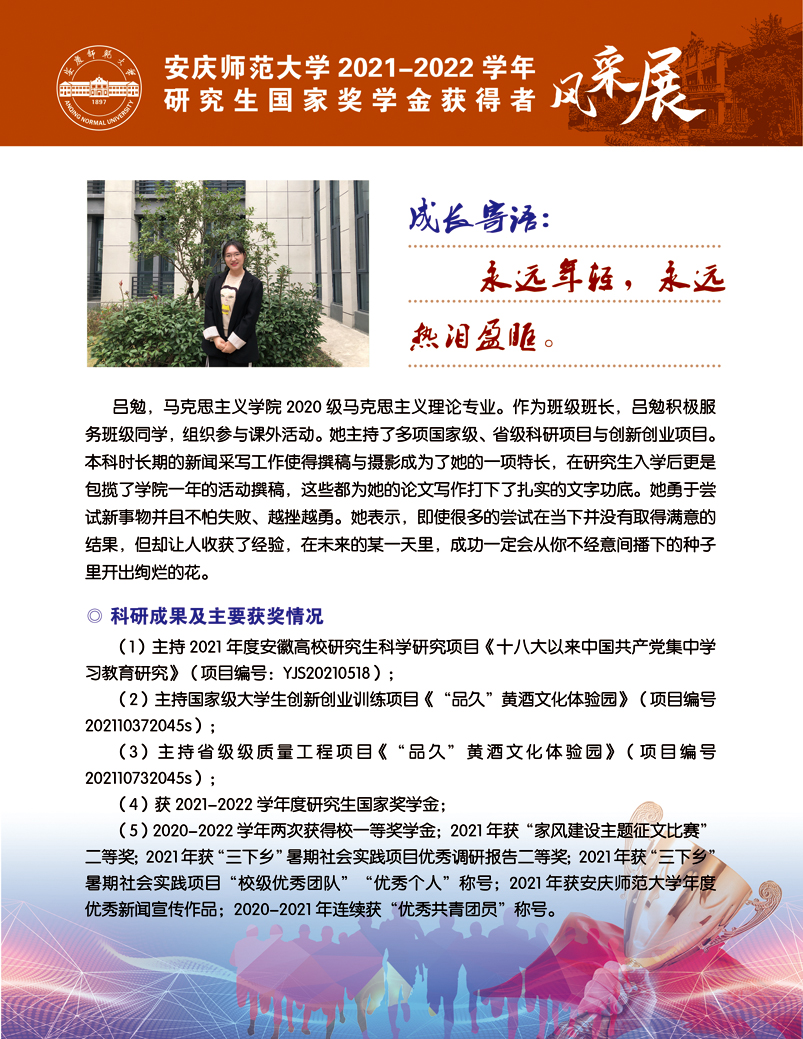 编者按:中国共产党beat365平台唯一官网第二次党员代表大会即将召开,这是学校在推进高水平大学建设新征程中召开的一次重要会议。学校第二次党代会肩负着统一思想、凝心聚力、统筹规划、引领发展的重要使命,既要全面总结过去五年来学校党的建设和事业发展取得的好成绩、形成的好经验,也要认真研判新形势、应对新挑战,为学校新阶段实现高质量发展锚定方向、擘画蓝图。为迎接学校第二次党代会的召开,学校特推出【砥砺奋进的五年∙学生风采】系列报道,接续2018年以来【国奖风采录】专栏报道,集中展现beat365官网青年学子昂扬向上、奋发有为的青春风貌,激励与启迪广大青年立志做有理想、敢担当、能吃苦、肯奋斗的新时代好青年,让青春在全面建设社会主义现代化国家的火热实践中绽放绚丽之花。