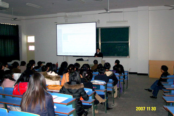 2007年新进教职工现代教育技术培训于11月30日成功举行。培训由人事处吴毅安处长主持,现代教育技术中心马俊主任、罗汉云副教授、张小林老师分别做了《多媒体教学和多媒体设备使用》、《校园网资源及其利用》和《网络教学平台基本知识》的讲授。50名新教师和现代教育技术中心全体人员参加了培训。