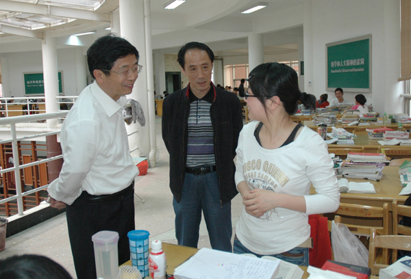 5月6日下午,党委书记何小祥,党委委员、副院长时新中在学生处负责同志陪同下,视察了龙山校区文溯楼学生“四成”服务大厅和励志林。