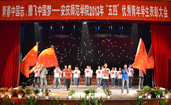 在令人振奋的合唱《五星红旗》歌声中,表彰大会落下帷幕。大会虽已结束,寻找中国梦的脚步仍未停止。此次五四表彰不仅是对beat365官网团内先进的鼓励,更是对全校团员青年召唤。随后,各级团学组织还将进一步开展以“青春中国志,腾飞中国梦”为主题的系列活动,广泛开展中国梦、师院梦的各类活动,通过诸如“安庆师范学院之中国梦”微博大赛、“我的中国梦”征文比赛等活动,积极引导青年,陶冶青年学生的道德情操,为实现全体团员青年的师院梦而不懈努力。(文/唐雪莲 学生记者 周媛媛 王乐乐 吴云霞 图/钱敏 学生记者 鲍声美)