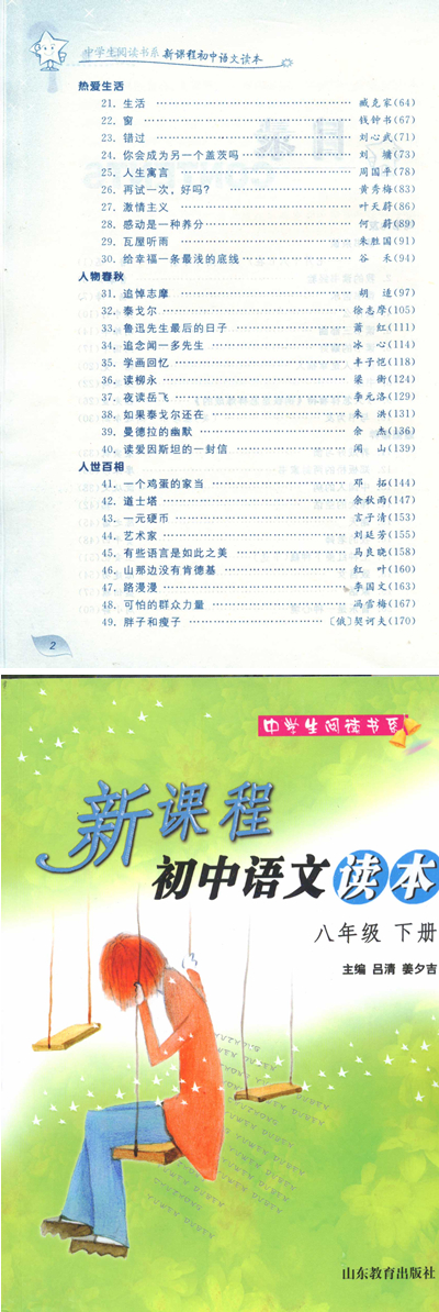 山东省《新课程初中语文读本》(中学生阅读书系)是适应语文课程改革的需要,依据教育部颁布的《全日制义务教育语文课程标准》,在《中学生阅读文选》基础上,增删、调整部分选文,修订出版的,旨在体现和深化“课题”精神,开拓学生的视野,陶冶学生的情操,培养其阅读鉴赏和审美能力,进而全面提高学生的人文素养。朱洪教授的《如果泰戈尔还在》这篇文章记叙了赵朴初1961年去印度出席泰戈尔百岁诞辰纪念会期间一次精彩的发言。该教材评价说,该文记叙了赵朴初先生发言的两大亮点:一是面对会议主席——印度科学和文化部部长卡比尔突然发难,是离场以示抗议还是留下继续发言的两难选择时,赵朴初选择了留下发言给以批驳以维护祖国尊严;二是在准备好了的讲稿不能直接使用而要临时组织一段即席发言时,他摆事实、讲道理,当场给予卡比尔以有力的回击,展示出了他口若悬河的语言表达能力和智慧的天才。