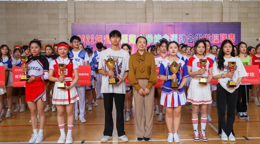 5月21日,2022年校综合运动会啦啦操联赛在龙山校区体育馆举行。校党委常委、校体委副主任、副校长吴琼出席颁奖仪式,并为获奖代表队颁发奖杯及证书。