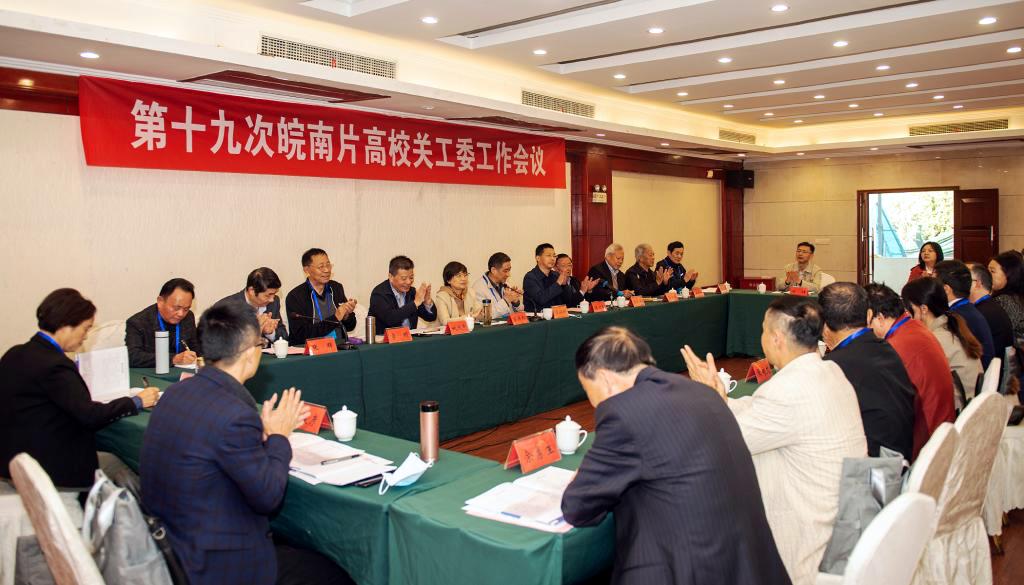 10月29日,第十九次皖南片高校关工委工作会议在beat365官网召开。省教育厅关工委常务副主任李炳银,省教育厅关工委常务副秘书长姚成秀,皖南片8所高校关工委有关同志30余人参会。党委常委、副校长、校关工委主任汪时珍致开幕词,会议由校关工委常务副主任张群主持。