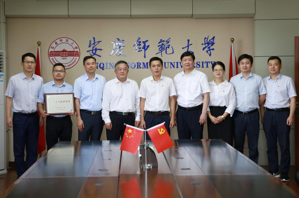 近日,共青团安徽省委书记杨正、副书记胡靖等来校,为学校颁发“全国五四红旗团委”奖牌。党委书记许继荣、党委副书记吴照明会见杨正一行。