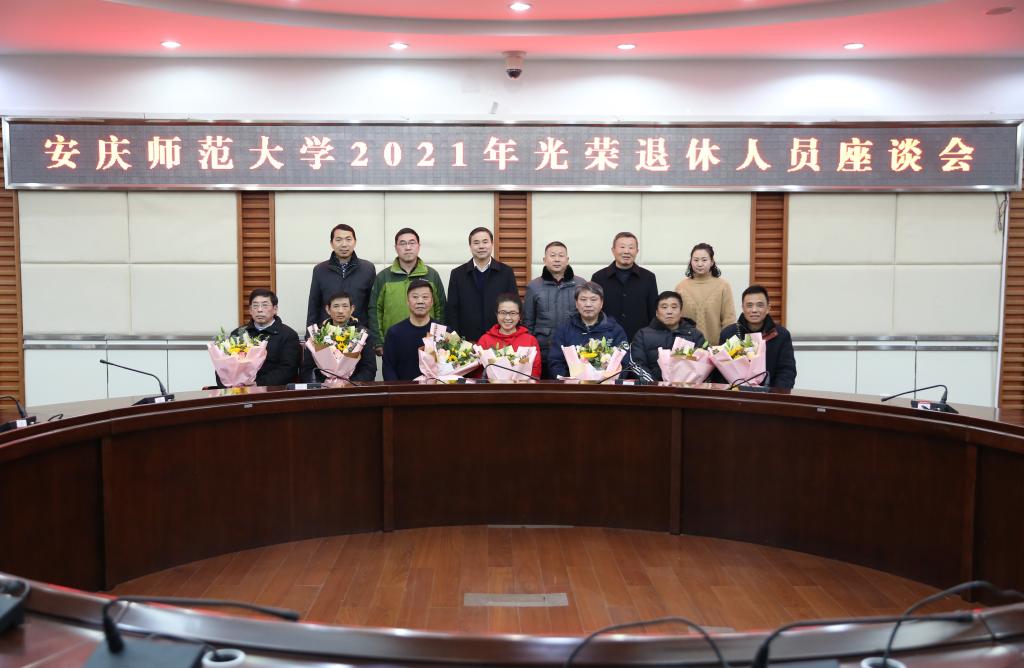 1月5日,beat365官网在龙山校区行政楼二楼会议室举行2021年光荣退休人员座谈会。 党委副书记吴照明出席座谈会,并为退休教工送上了鲜花和纪念品。2021年度光荣退休人员,校工会、人事处、离退休工作处有关负责人参加会议。