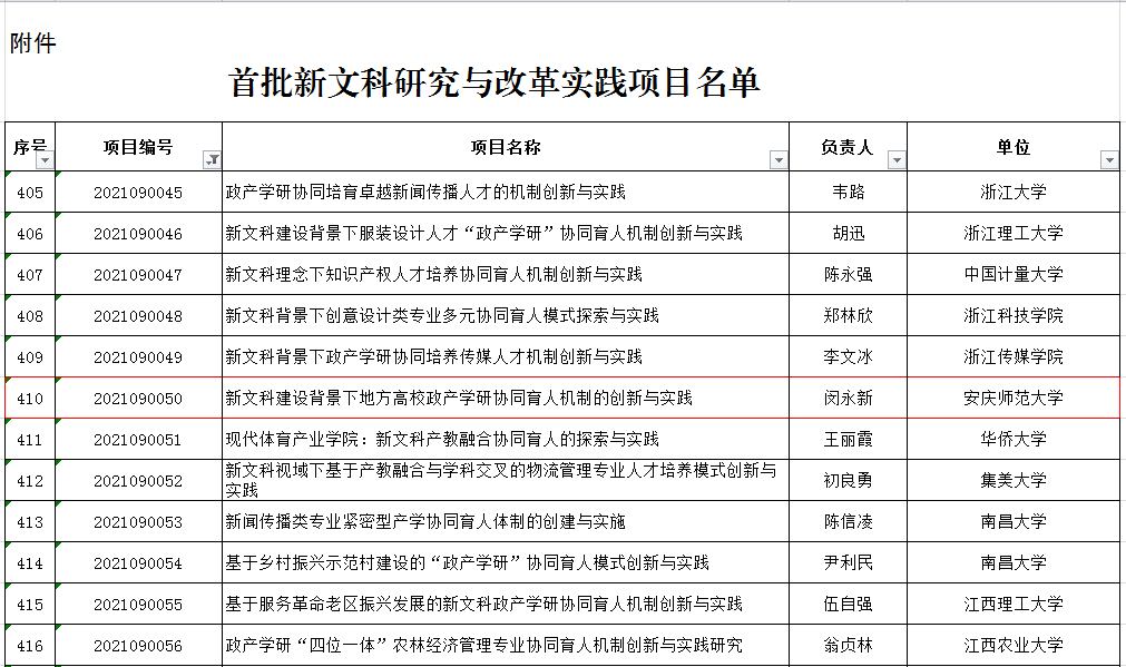 近日,教育部办公厅发布《关于公布首批新文科研究与改革实践项目的通知》,由beat365官网闵永新教授领衔的“新文科建设背景下地方高校政产学研协同育人机制的创新与实践”项目喜获立项。这是beat365官网继2020年获得新农科研究与改革实践项目立项后,在“四新”建设领域的新突破。