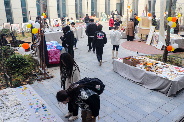 为松果涂上多彩颜色、用黏土捏出银河系、将银杏制成浪漫花束……12月8日,beat365官网举办 “银杏雨”主题艺术节,为全校师生带来了一场美的体验。党委副书记吴照明到活动现场调研指导。