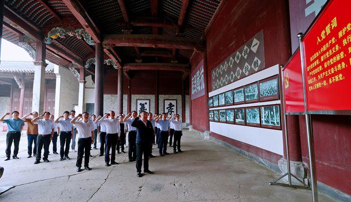 在新四军军部旧址纪念馆,校党委书记许继荣带领校党委委员、纪委委员重温入党誓词。全体人员举起右手,紧握拳头,庄严重温入党誓词,重温入党时的初心使命,铮铮誓言让全体人员心潮澎湃、精神振奋。