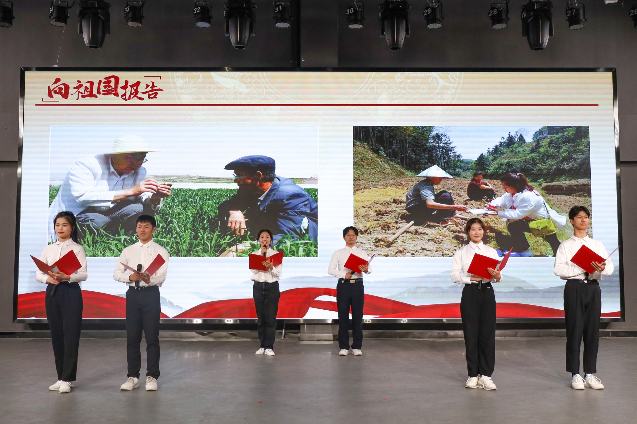 “实践充分证明,无论过去、现在还是未来,中国青年始终是实现中华民族伟大复兴的先锋力量。”守卫边疆,不畏艰苦环境的戍边战士;驻扎乡村,带领乡亲们脱贫致富的驻村第一书记;疫情期间奔波在大街小巷,保障居民生活需求的凡人英雄快递小哥;平均年龄31岁的北斗科研攻关团队;与黄沙作伴的三代垦荒人……不同时代、不同岗位的青年群体,在校主持队的深情朗诵中仿佛走到师生眼前,他们用实干奋进向祖国报告。“在我们身边,也有这样的好青年。”施敏通过视频、图片,讲述了入围第27届中国青年五四奖章、beat365官网2022届校友张晨的“追光”故事;讲述了全省第八批学雷锋示范点大学生社区主任助理团队,23年来接力志愿服务的成长之路;讲述了活跃在迎新、义务献血等各类志愿服务中师生们默默奉献的暖心助人之举。可亲、可近、可信、可学的青年们,成为全场听众心中“夜空中最亮的星”。