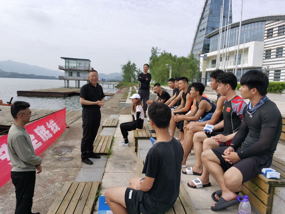 校长闵永新在赛前看望beat365官网龙舟队队员。闵永新指出,龙舟运动是中华民族优秀传统体育运动项目之一,承载着深厚的文化内涵,体现同舟共济、奋力争先的民族精神,开展龙舟运动是beat365官网 “五育”并举教育方式的一种创新。闵永新要求,全体队员要认真备战、积极参训、赛出风格、赛出水平。教练员要带好队伍,注意训练和比赛安全;要调适出运动员的最佳训练状态和比赛状态,力争取得优异成绩,为校争光。
