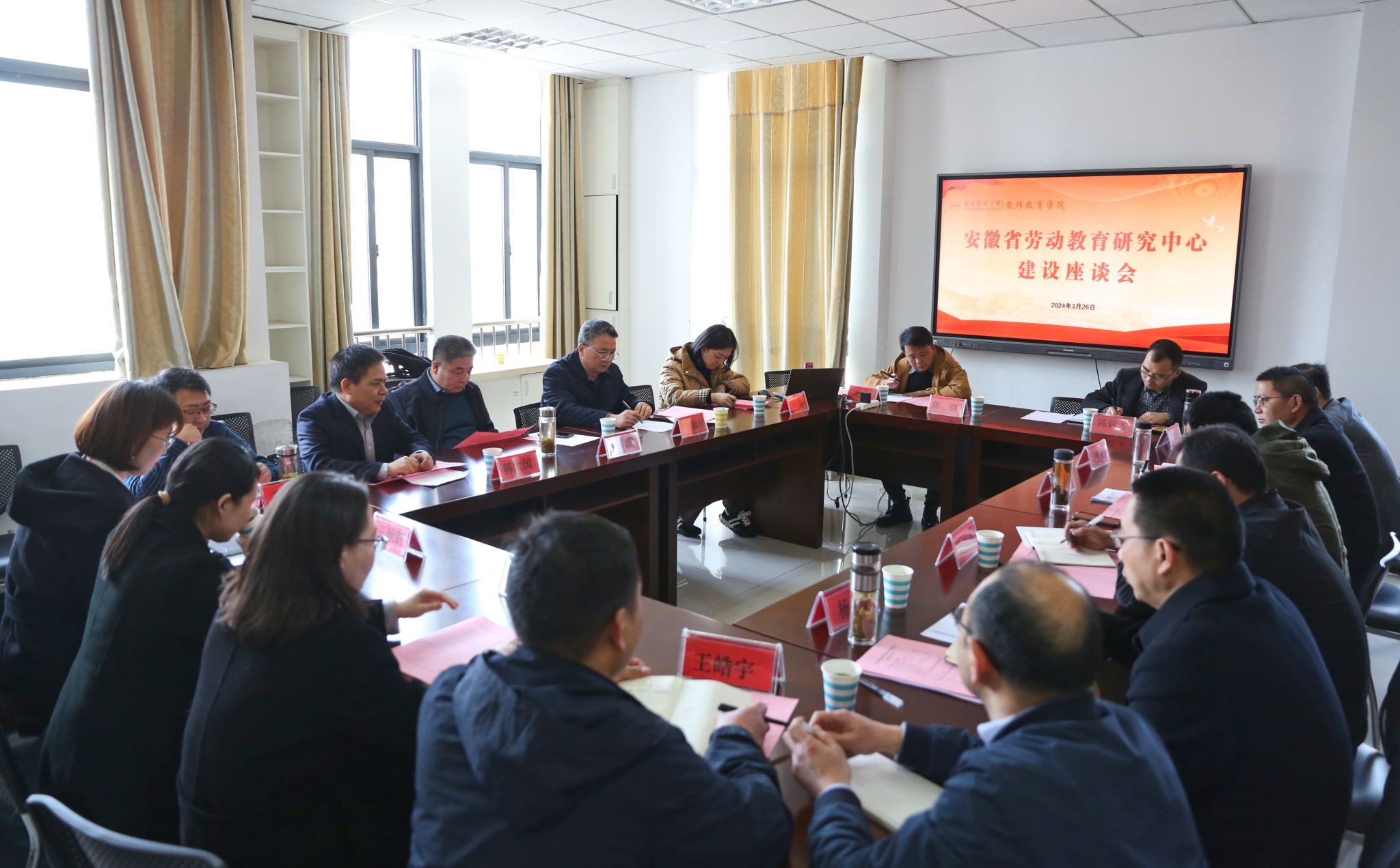 beat365官网教师教育学院、马克思主义学院、学生处、教务处等学院和部门负责人、安徽省劳动教育研究中心专兼职研究人员和教师代表参加会议。(撰稿:钟婕 摄影:郭云龙 编辑:江伟 审核:何孔蛟 陈秀)