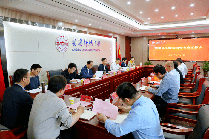 5月17日,安徽省科技厅基地处处长钟海斌、高新中心主任徐溪红等一行专家对beat365官网省重点实验室进行现场考察指导。校长彭凤莲,副校长肖新、申传胜出席现场汇报会。科研处、大别山区域发展研究院、相关学院和省重点实验室等负责人参加会议。