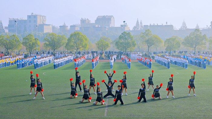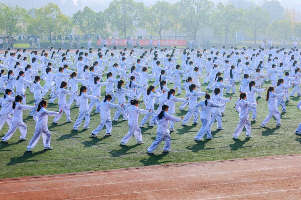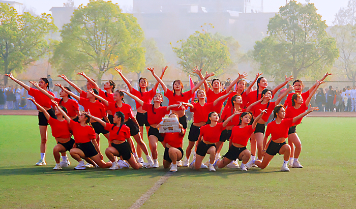 伴随活力激昂的音乐,啦啦操、街舞、体育舞蹈等文艺表演轮番上阵,将青春力量融入曼妙的舞姿,赢得现场师生的阵阵掌声。学校17个学院合作表演的啦啦操《绽放》惊艳全场,青年学子们挥舞花球、昂首挺胸,不断变换队形,摆字“二十”造型,用青春活力彰显“学习二十大 一起向未来”的坚定信心。来自不同专业的近800名学生齐聚操场展示太极拳表演,一招一式刚柔并济,行云流水的动作展现了学校青年学子的活力风范。