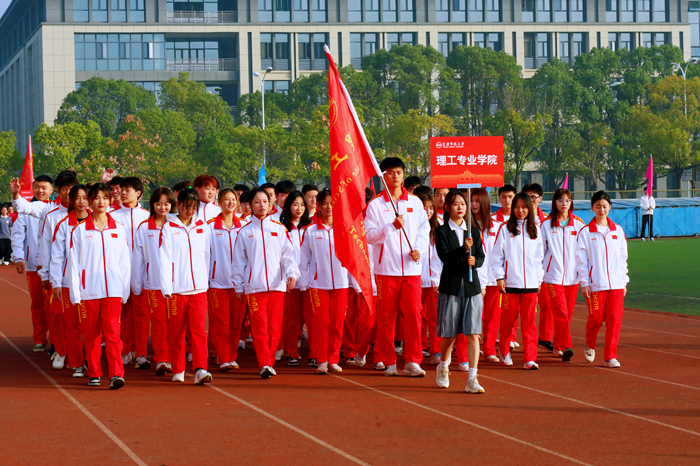 校党委常委、副校长汪时珍致开幕词。汪时珍指出,学校积极响应习近平总书记在党的二十大报告中提出的“加强青少年体育工作,加快建设体育强国”宏伟目标,高度重视体育工作,全面落实“五育并举”,牢固树立“健康第一”的体育理念,坚持“以赛促学、以赛促教、以赛促练、以赛促建”的工作思路,形成了“7+1”校内品牌体育赛事,引导学生实现德智体美劳全面发展,推动学校体育事业高质量发展。汪时珍强调,广大青年学生要风雨兼程、昂扬向上,锻炼体魄铸意志,积极参与体育运动,弘扬体育精神;要脚踏实地、砥砺前行,文明精神逐梦想,凝聚挑战极限的勇气和舍我其谁的底气,不断创造人生新的辉煌;要永葆初心、扬帆远航,全面发展担大任,在运动赛场挥洒青春汗水,展现个性风采,体现人生价值,实现全面发展。汪时珍希望,全体师生员工要以本次运动盛会为契机,踔厉奋发、勇毅前行,以健康的体魄、饱满的热情投入到学校各项事业高质量发展中来,以实际行动参与到“健康中国”“体育强国”建设的伟大事业中来,奏响“强国复兴有我”的筑梦强音。