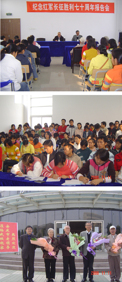 11月11日上午,校关心下一代工作委员会和团委联合举办了纪念红军长征胜利七十周年报告会。报告会由关工委主任朱建华同志主持,参加过红军长征的90岁高龄的老红军骆斌为我们讲述了当年红军长征的事迹。近百名大学生听聆听了报告。