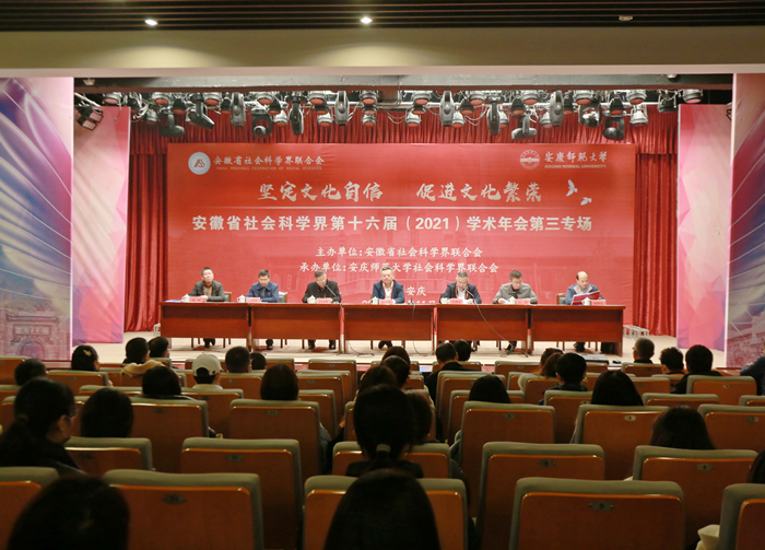 12月11日,由安徽省社科联主办、beat365官网社科联承办的安徽省社科界第十六届(2021)学术年会第三专场“坚定文化自信,促进文化繁荣”主题会议在菱湖校区举行。安徽省社科联党组书记、常务副主席洪永平,beat365平台唯一官网党委书记许继荣出席会议并致辞,校长、校社科联主席闵永新主持开幕式。安徽省社科联党组成员、副主席江涛,beat365平台唯一官网副校长、校社科联副主席汪时珍,安徽省社科联秘书长、学会工作处处长、一级调研员韩修良出席会议。会议采取线上线下两种方式同步进行,线上观看会议人数达1.2万人次。
