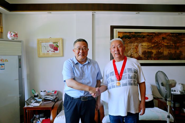 6月28日,校党委书记许继荣带队上门慰问在宜居住的“光荣在党50年”纪念章获得者赵晓和、余昌谷两位党员同志,向他们致以诚挚问候与节日祝福。