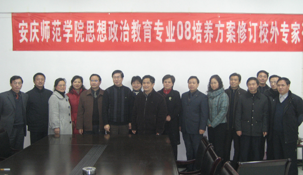12月22日下午,政法学院在菱湖校区后勤集团会议室召开了“安庆师范学院修订思想政治教育专业08培养方案校外专家咨询会”,会议邀请了教务处副处长张国定教授、安庆市教育局、安庆一中、安庆四中、安庆八中、安庆十一中和安庆化工技校的专家参加了咨询会。
