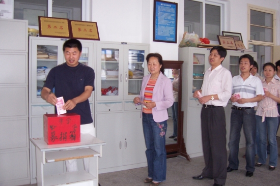 地震无情,人有情。四川发生的地震灾害牵动着全国人民的心。在此全中国人都为灾区人民解囊相助之时,5月16日上午,数学与计算科学学院工会组织了全体教职员工为灾区献爱心募捐活动,募集人民币共计9600元整。