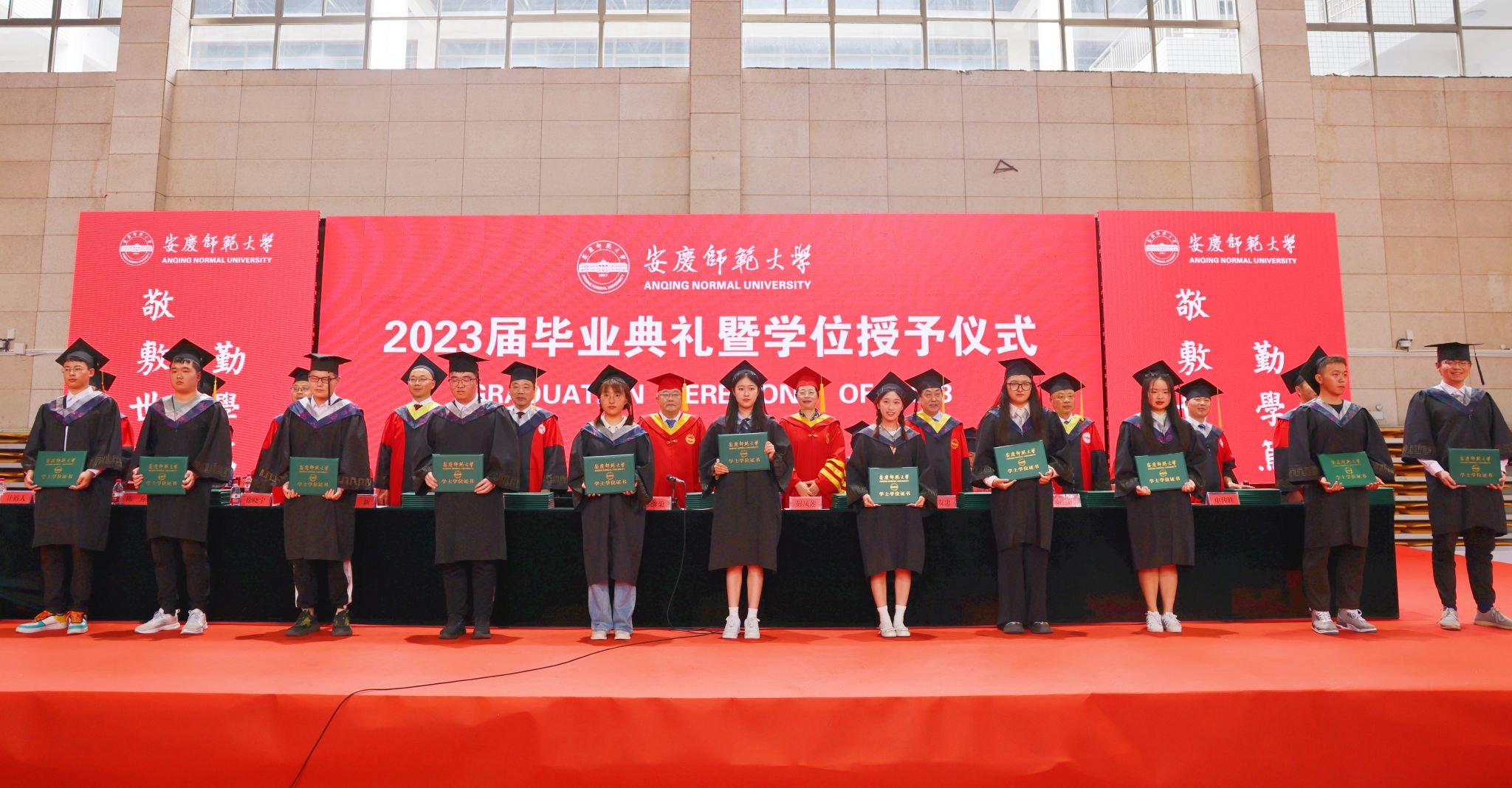 6月13日,学校举行2023届毕业典礼暨学位授予仪式。校党委书记许继荣,校长彭凤莲,校党委副书记崔明,校党委常委、副校长刘友忠、肖新,校党委常委、纪委书记秦朗,校党委常委、副校长徐晓宁、申传胜,校党委常委陈秀、张红飞、计裕人,beat365官网校友、六安一中校长陈明龙和校学位评定委员会全体成员出席典礼。各学院党政班子全体成员、各部门主要负责人、2023届全体硕士毕业生导师、2023届毕业班全体辅导员、教师代表、校友代表、家长代表及2023届毕业生代表参加典礼。典礼由许继荣主持。