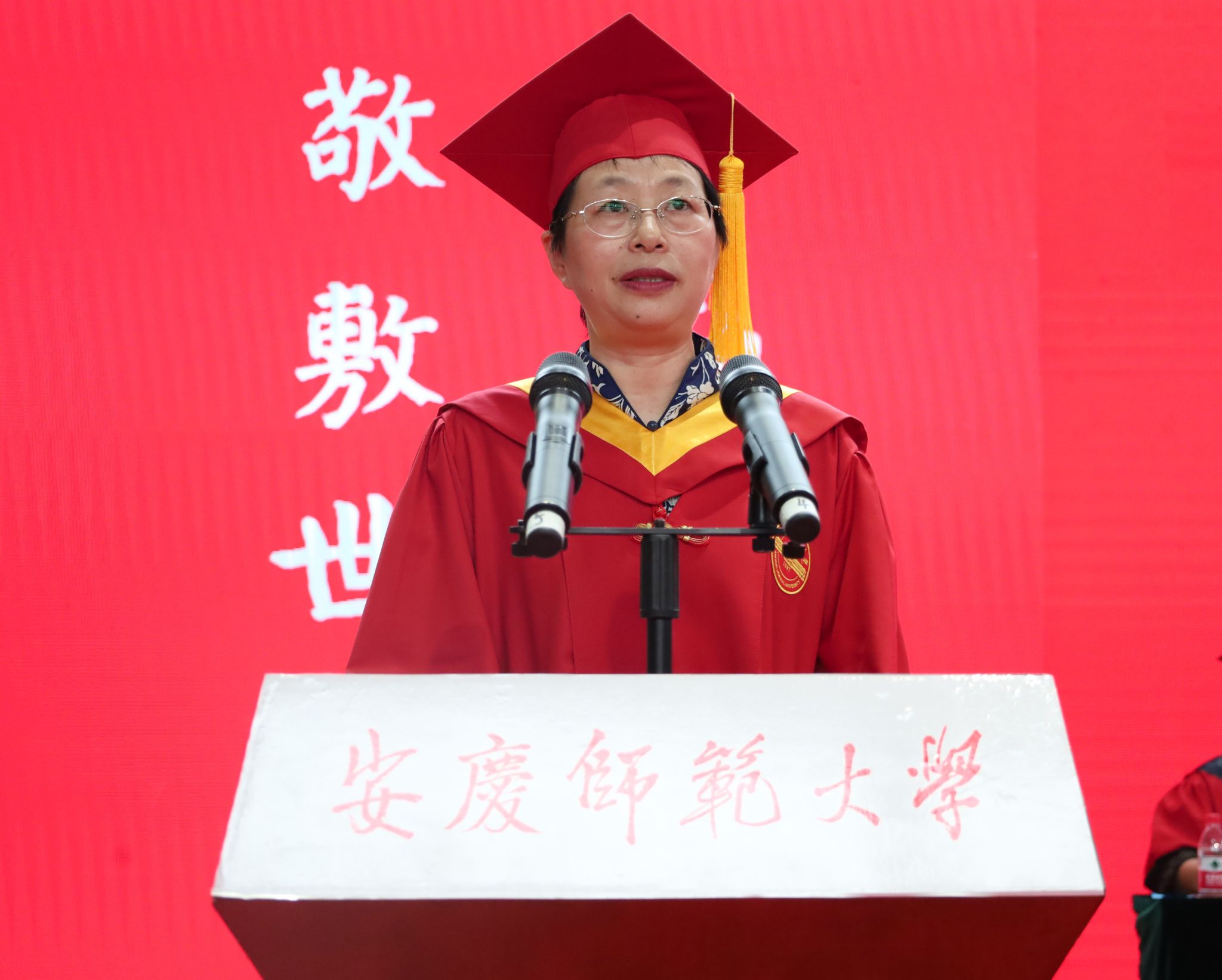 2023届本科生毕业生代表、生命科学学院王来琳回顾了大学四年的校园生活,讲述了自己对母校的眷恋与感恩之情。她表示,今后将牢记“敬敷、世范、勤学、笃行”的校训,牢记恩师们的谆谆教诲,做拥有智慧并富有责任的人,做胸怀大志并脚踏实地的人,做敢于创新并勇挑重担的人。