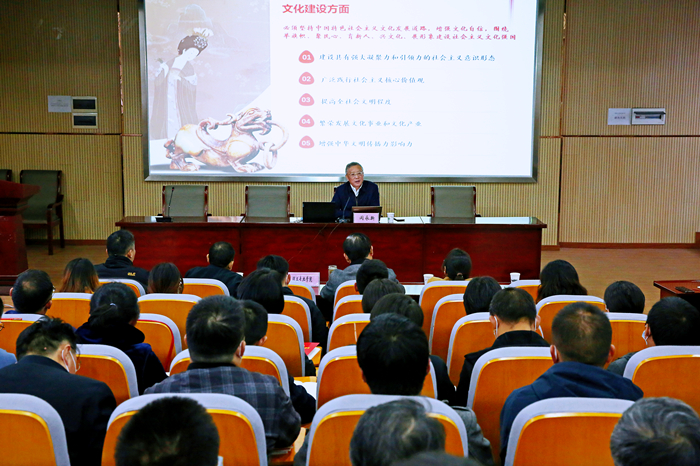 闵永新从“伟大主题、伟大变革、伟大理论、伟大愿景、伟大部署、伟大工程和重大意义”等七个方面对党的二十大精神进行了全面、系统、深入的解读和阐释。