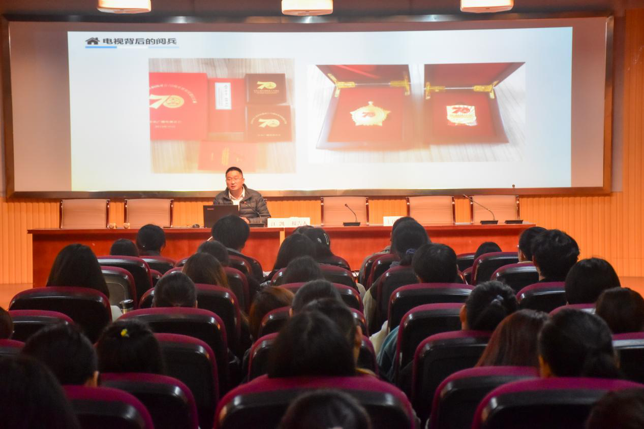12月10日,中央广播电视台安徽总站记者江凯、葛启文应邀来校开展新闻业务培训。党委宣传部、传媒学院有关负责人与学校大学生记者团、新媒体中心成员、传媒学院部分学生代表共100余人现场聆听了培训讲座。