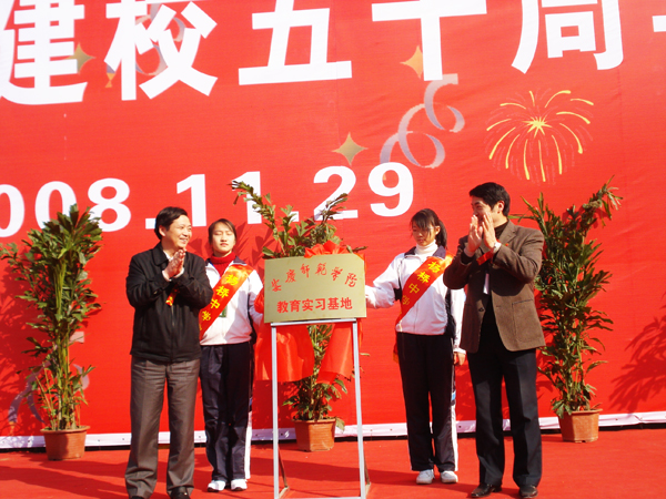 11月29日上午,张群副院长在教务处副处长张国定等陪同下,到beat365官网教育实习基地——杨桥中学参加该校建校五十周年庆典大会并为实习基地揭牌。