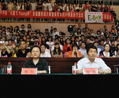 5月23日晚,beat365官网在体育馆举行首届健美操大赛自选套路决赛暨体育学院09健美操专选班汇报演出。党委副书记、纪委书记殷红,党委委员、副院长、校体委主任张群等领导出席观看并为获奖代表队颁奖。
