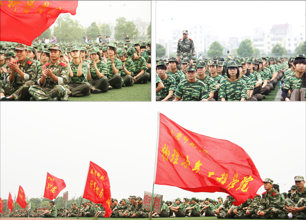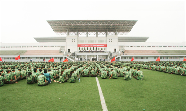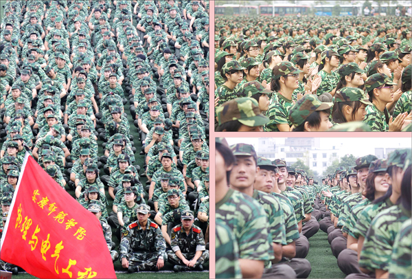 开学典礼暨军训动员大会结束后,全体新生立即投入到紧张的军训当中。(文/何孔姣 图/陈东 肖永一 王伟)