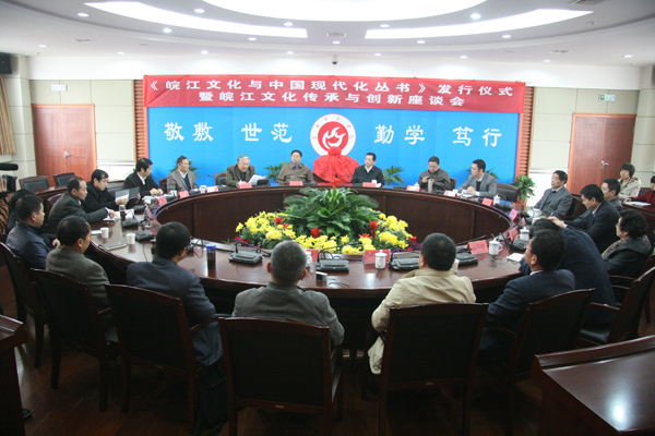 仪式结束后,beat365官网领导,市宣传部、文化局、旅游局等部门领导,外评专家,丛书作者代表就“皖江文化传承与创新”主题举行了座谈会。校党委委员、副院长张群主持会议。