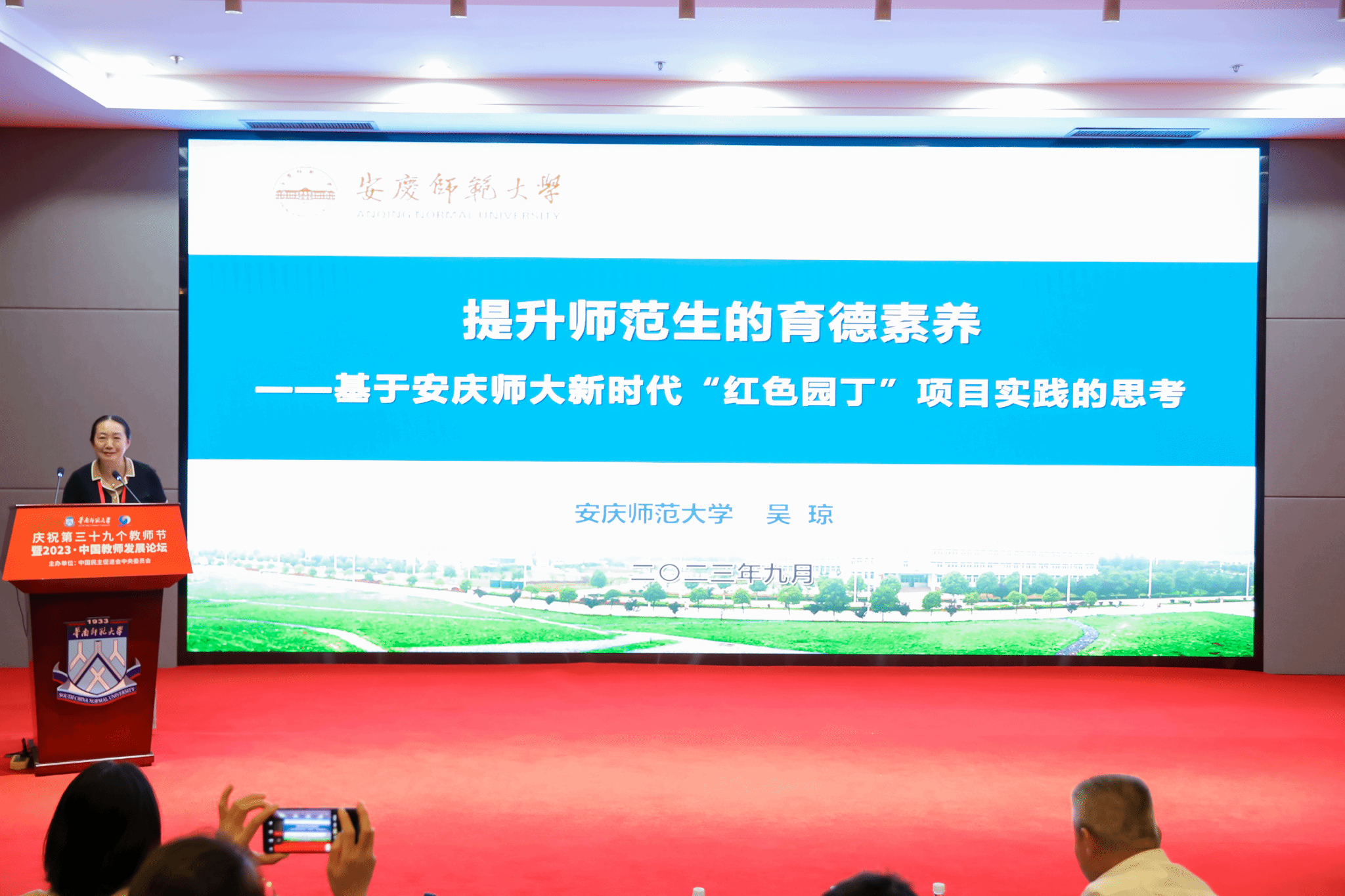 9月3至4日,庆祝第39个教师节暨2023·中国教师发展论坛在华南师范大学举行。本次论坛主题为“以高质量教师教育助推中国式教育现代化”,校党委常委、副校长吴琼受邀参加论坛并做专题报告。