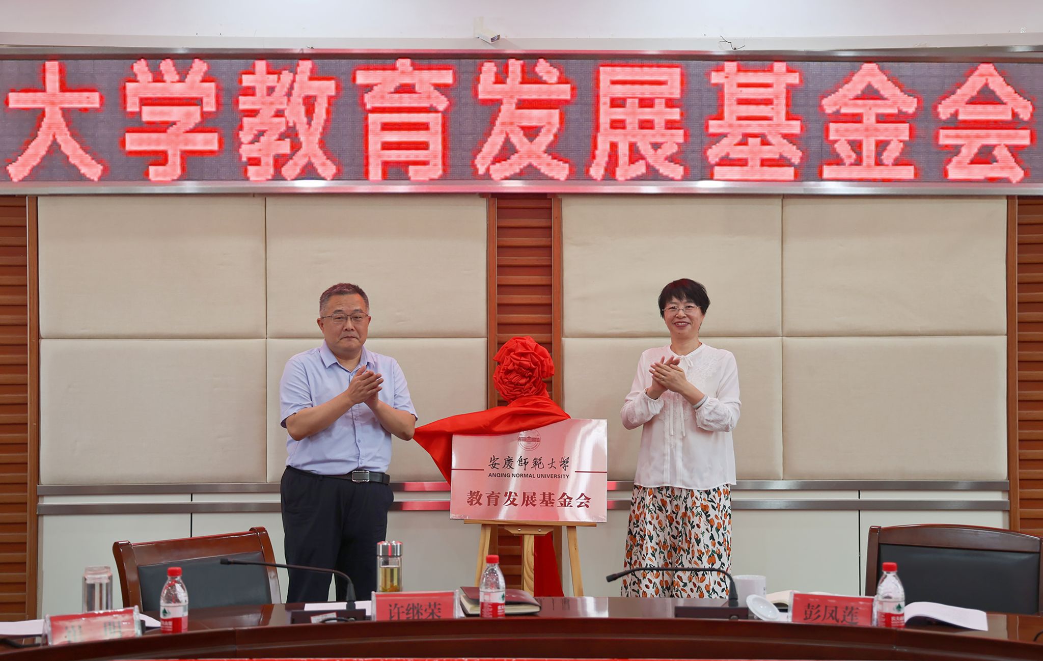 校党委书记许继荣、校长彭凤莲共同为基金会揭牌。