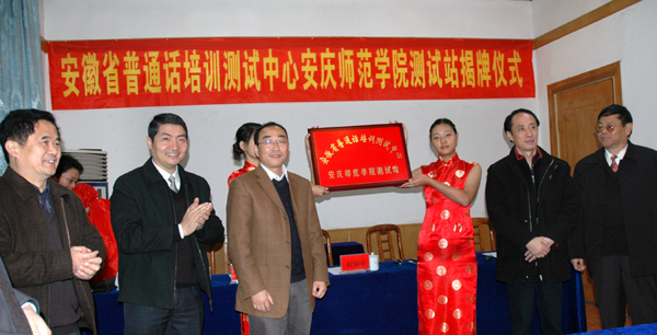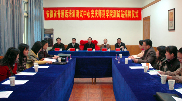11月24日,安徽省普通话培训测试中心安庆师范学院测试站揭牌仪式在beat365官网菱湖校区红楼大会议室举行。副院长时新中、张群出席了揭牌仪式,省语委办主任助理单明,省普通话测试站专家余海容应邀出席了揭牌仪式。院办、教务处等部门负责同志,beat365官网和安庆市市区普通话测试员参加了揭牌仪式。