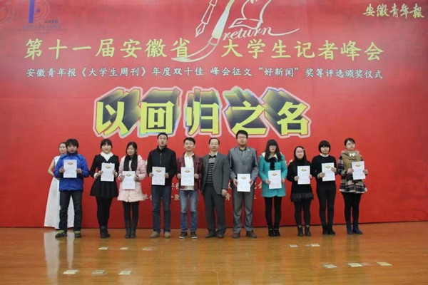 12月7日,以“以回归之名”为主题的第十一届安徽省大学生记者峰会暨安徽青年报《大学生周刊》年度双十佳、主题征文、“好新闻奖”颁奖仪式在合肥学院隆重举行。此次峰会吸引了60多所省内高校的积极参与,主办方收到74份申请,共有818篇作品参与角逐。