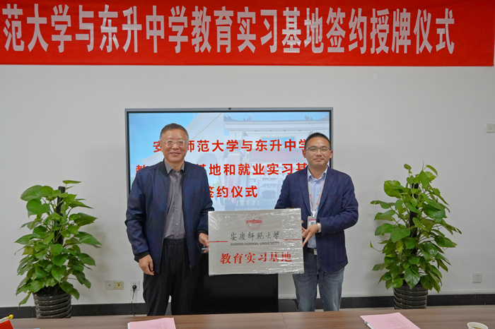 日前,校党委副书记、校长闵永新到怀宁县东升中学教育集团出席教育实习基地签约授牌仪式。校办公室、教务处、黄梅剧艺术学院、东升中学相关负责人和校友代表参加仪式。