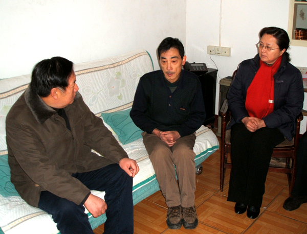 1月11日,党委书记赵晓和、纪委书记、工会主席殷红等领导来到教务分会职工朱广海和后勤二分会职工王洛荣家,关切地询问起他们的生活状况,并提前祝贺他们新春快乐。1月12、13日,纪委书记、工会主席殷红上门慰问了人文与社会学院教授董根明、教育学院分会职工蔡玉梅、体育系分会职工姚依民、后勤二分会职工黄贵源遗孀及部分离退休老同志等。