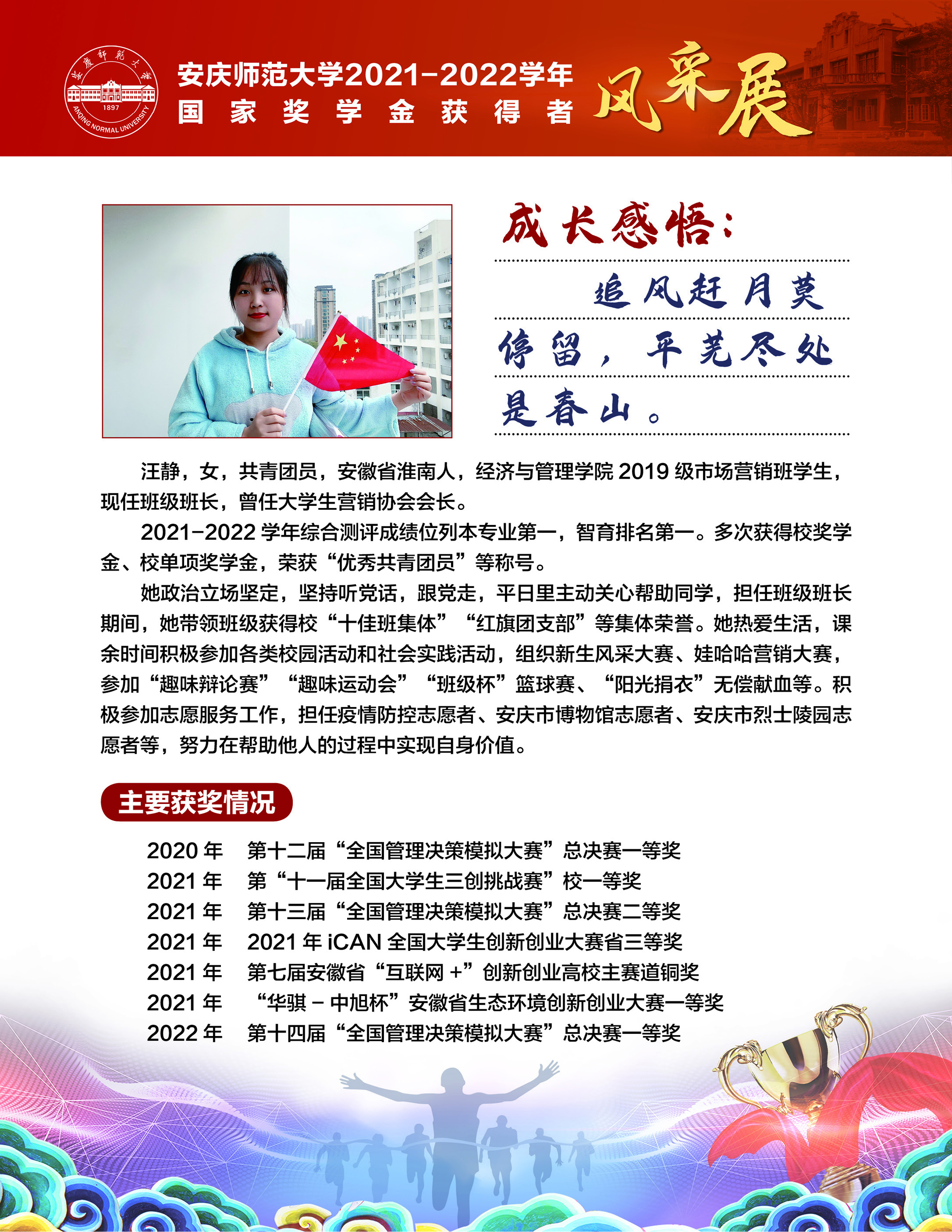 【砥砺奋进的五年∙学生风采】本科生国家奖学金获得者风采展示(二)