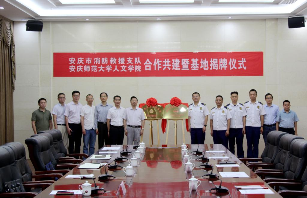 6月1日,学校与安庆市消防救援支队合作共建暨“消防安全教育实践基地”和“思想政治教育基地”揭牌仪式在市消防救援支队大楼会议室举行。党委常委、副校长汪时珍,安庆市消防救援支队党委书记、政治委员张诚出席揭牌仪式,人文学院和安庆市消防救援支队班子成员参加仪式。