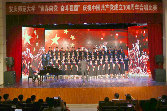 法学院合唱团用抒情的方式演奏歌曲《在灿烂阳光下》,回望了中国共产党人的革命初心;美术学院合唱团身着特色手绘服装,深情演绎《我和我的祖国》;理工专业学院合唱团的《天耀中华》再现了百年奋斗征程,礼赞新时代;黄梅剧艺术学院用特有的唱腔合唱《万疆》,唱出了华夏之壮美,祖国的繁荣昌盛……