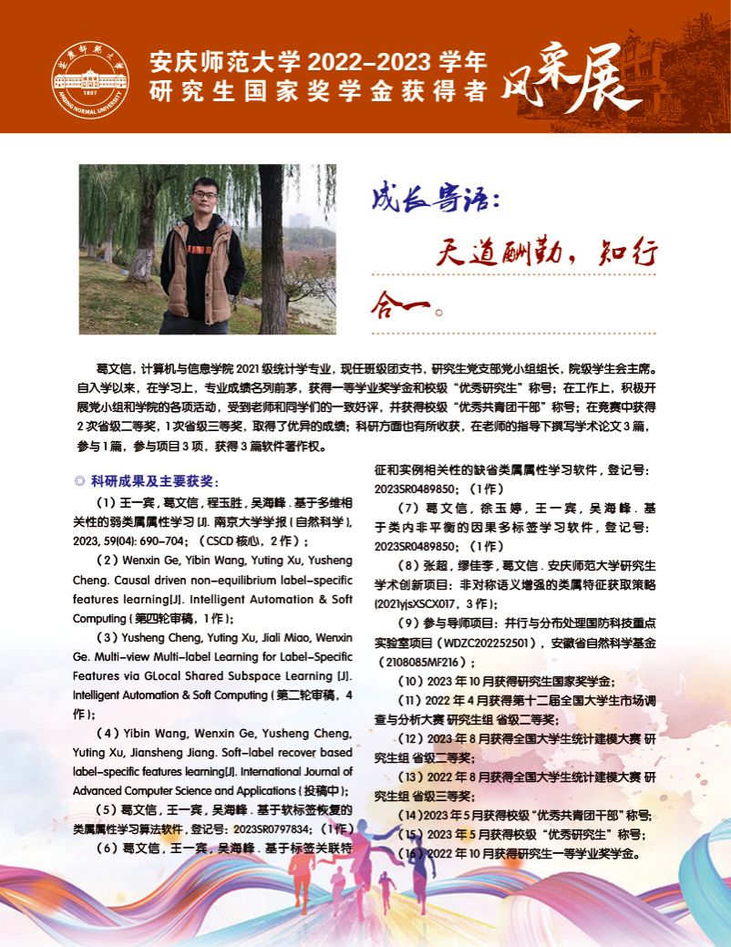 编者按:青春由磨砺而出彩,人生因奋斗而升华。近期,学校设立【国奖风采录】专栏,对荣获beat365平台唯一官网2022-2023学年国家奖学金的大学生事迹进行集中展示,激励beat365官网大学生坚定理想信念、牢记初心使命,锤炼过硬品格、勇于担当作为,厚植家国情怀、涵养进取品格,坚定不移听党话、跟党走,立志做有理想、敢担当、能吃苦、肯奋斗的新时代好青年,让青春在全面建设社会主义现代化国家的火热实践中绽放绚丽之花。
