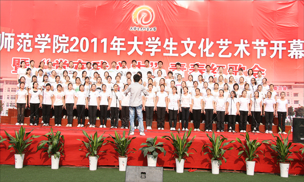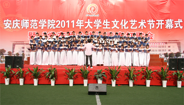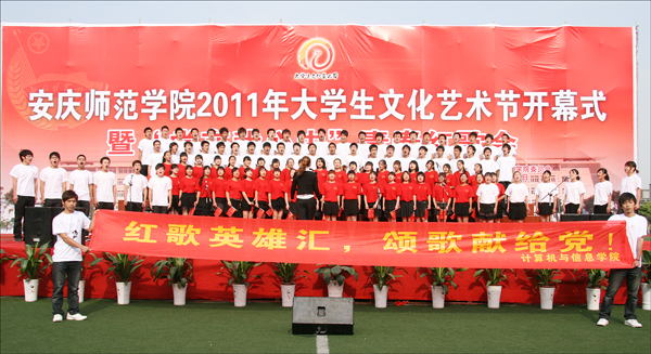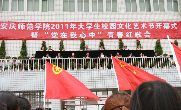 这是2011年的五四青年节,在安庆师范学院龙山校区塑胶运动场,2011年大学生文化艺术节开幕式暨“党在我心中”青春红歌会在这里隆重举行。何小祥、朱士群、时新中、殷红、闵永新、张群等校领导,相关部门、各学院领导以及2000余名师生一起参加了红歌会。