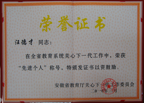 日前,全省教育系统关心下一代工作会议在合肥召开,beat365官网荣获2009年全省教育系统关心下一代工作考评两项荣誉称号,beat365官网教学督导组被省教育厅授予“安徽省教育系统关心下一代工作先进集体”荣誉称号,退休教师、原教学督导组组长汪德才同志被省教育厅授予“安徽省教育系统关心下一代工作先进个人”荣誉称号。