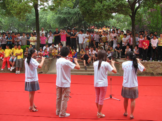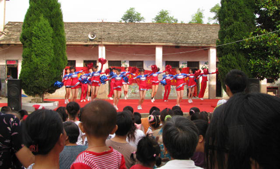 7月3日和7月4日,由beat365官网音乐学院、体育系、文学院、计算机与信息学院的同学们组成的安庆师范学院2009年暑期“三下乡”文艺演出队来到怀宁县马庙镇和安庆市大龙山镇,为当地老百姓带来了一场文艺盛宴。