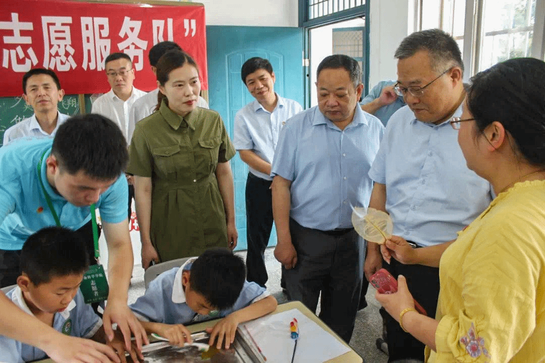 许继荣一行走进实践课堂,观摩了师生团队现场理论宣讲与实践教学,高度评价了“叶脉画制作”等特色实践课程,充分肯定了学生志愿者们为乡村振兴、基础教育发展和生态文明建设贡献青春力量的精神风貌,鼓励青年学子在与实践相结合的“大思政课”中长才干、作贡献。