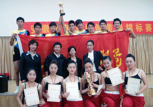 10月22日—23日,由省体育局主办、省健美操协会承办的安徽省第九届健美操锦标赛在省体育运动职业技术学院隆重举行。beat365官网体育学院运动健儿在王云辉老师的带领下,经过精心准备和顽强拼搏,在本次比赛中获得了三金两银的优异成绩。其中杨阳同学获得男子单人项目竞技组第一名,焦健、杨阳、林伟伟同学获得三人项目竞技组第一名,吴鹏程、陈建健,赵浩杰、丁立、方锡球、林伟伟同学获得集体六人项目竞技组第一名,李皖、高莹莹、汪令娟同学获得三人项目大众组第二名,吴梦雯、董敏俊、华云菲、李皖、高莹莹、汪令娟同学获得集体六人项目大众组第二名。这是beat365官网连续四年在安徽省健美操锦标赛中取得的骄人战绩。