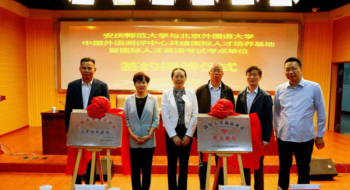 会上举行了签约仪式。吴琼、王悦等共同为中国外语测评中心人才培养基地、国际人才英语考试考点单位揭牌。