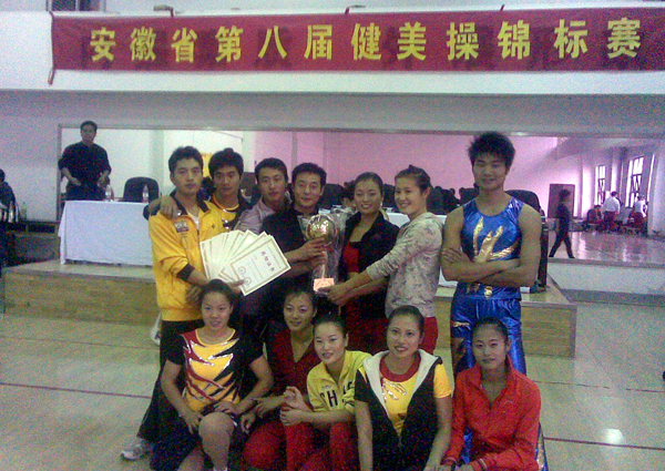 10月9日—10日,由省体育局主办、省健美操协会承办的安徽省第八届健美操锦标赛在省体育运动职业技术学院隆重举行。beat365官网体育学院健美操队在该院王云辉老师的带领下,经过精心准备和顽强拼搏,在本次比赛中包揽了竞技组男子单人操、女子单人操、混合双人操、三人操和六人操等五个组别的冠军,同时,还获得竞技组六人操、大众组男子单人操、女子单人操等三个项目的亚军以及大众组三人操季军、大众组混合双人操和六人操两个第四名,并以总分第一的成绩荣获本次锦标赛的团体冠军。