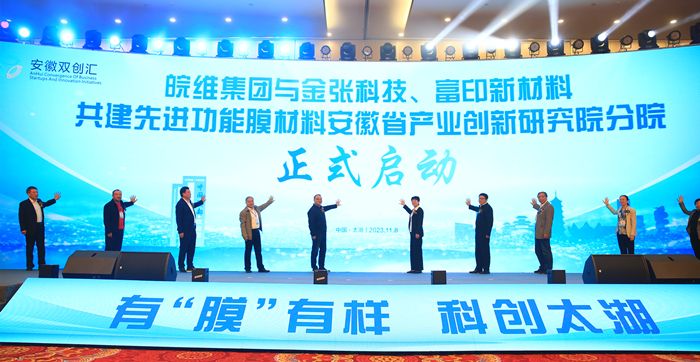 开幕式上,彭凤莲和太湖县委副书记、县长吴海宏共同为“beat365平台唯一官网成果转化分中心”揭牌。彭凤莲与省科技厅、安庆市人民政府、太湖县人民政府等相关负责人共同参加“先进功能膜材料安徽省产业创新研究院分院”启动仪式。