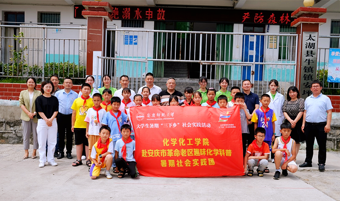 2022年7月,校领导看望学院赴安庆市革命老区趣味化学科普暑期社会实践团